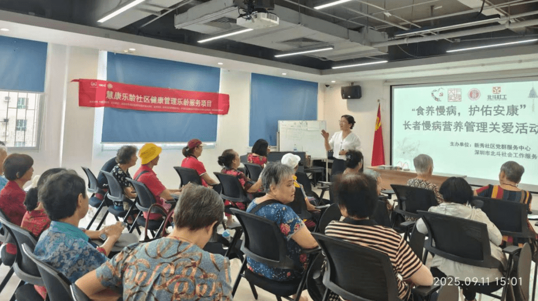 “老师,糖尿病患者吃水果有什么讲究?”“自制豆浆怎么搭配更有营养?”9月的深圳罗湖区,各社区党群服务中心里暖意融融,乐龄老人们围绕健康饮食的提问声此起彼伏。自今年7月起,“慧康乐龄社区健康管理乐龄服务项目”陆续走进新兴社区、湖景社区,9月更是密集覆盖新秀社区、黄贝岭社区、东门街道立新社区等9个社区。该项目以“居家养老,乐龄安康”为核心,通过开展健康管理系列讲座,为辖区老人量身定制“健康大礼包”,让科学养生知识走进社区、贴近生活。