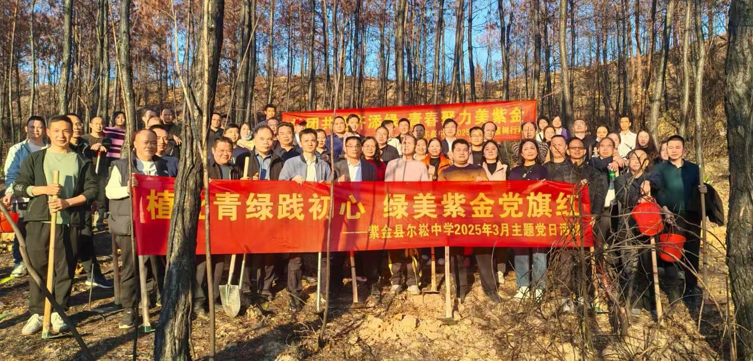 紫金县尔崧中学党员教师开展义务植树主题党日活动,